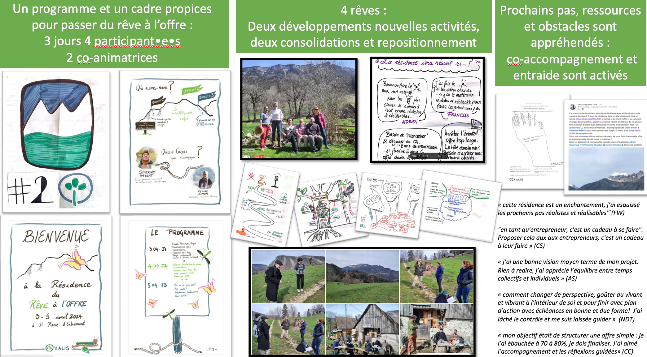 Un programme et un cadre propices pour passer du rêve à l’offre : 3 jours 4 participant•e•s 2 co-animatrices